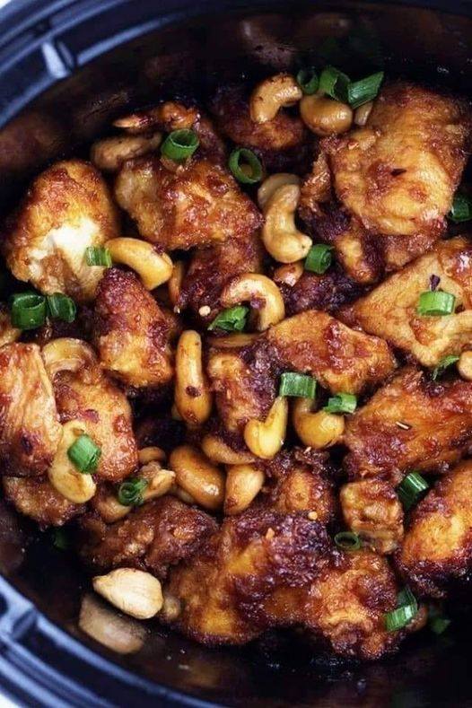 7. Once chicken is done, toss with sauce and cashews. Garnish with green onions if desired.