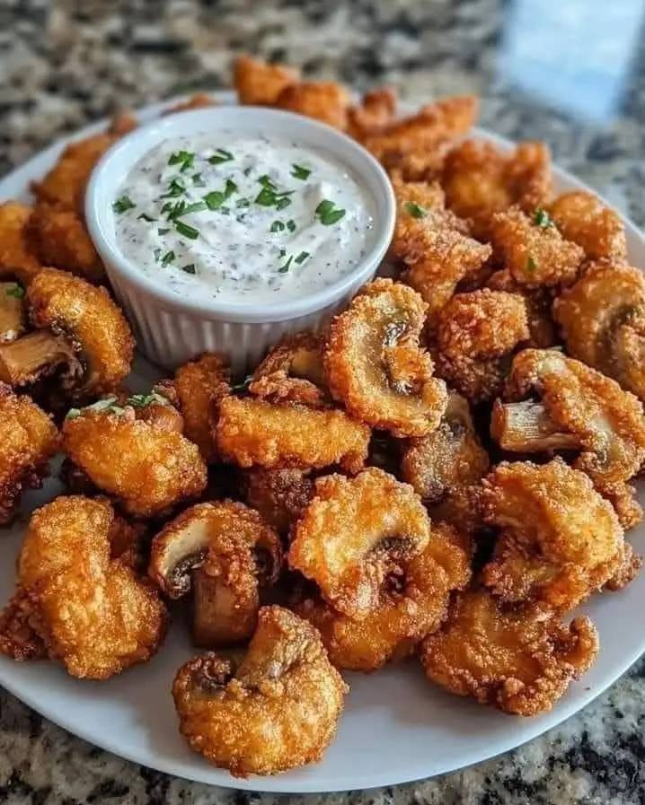 Here’s a delicious recipe for Crispy Fried Mushrooms with Cool Ranch Dip — perfect as a snack, appetizer, or party side!